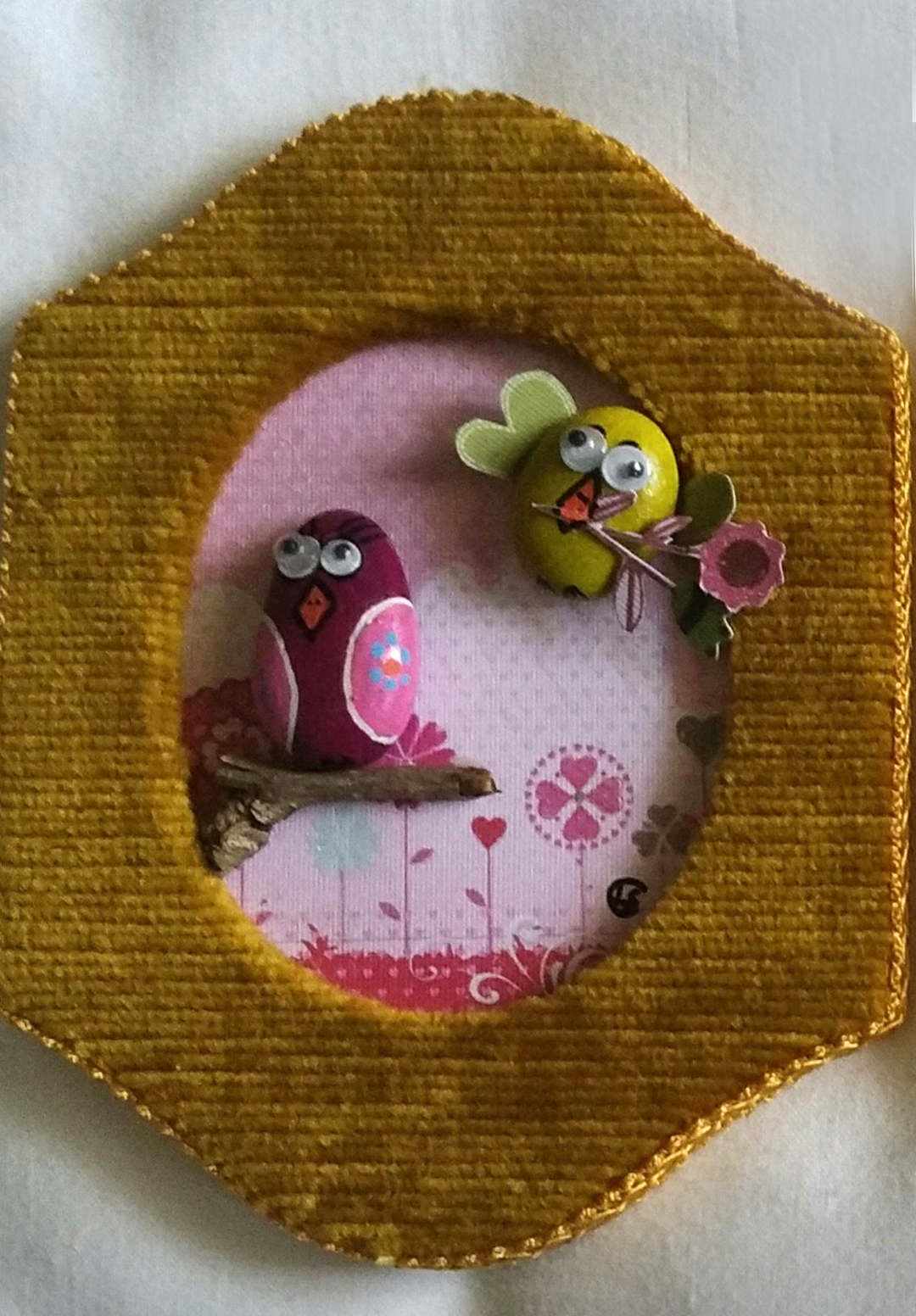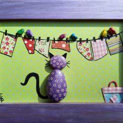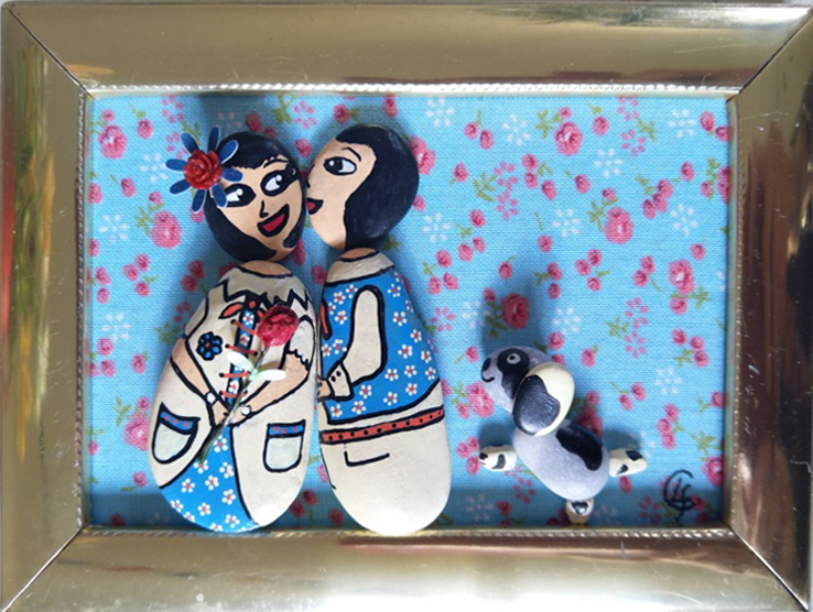 Chaque cadre, élaboré à partir de galets choisis dans des lieux que j'aime particulièrement (bords de Méditerranée, Hérault...) représente une photo de famille imaginaire.