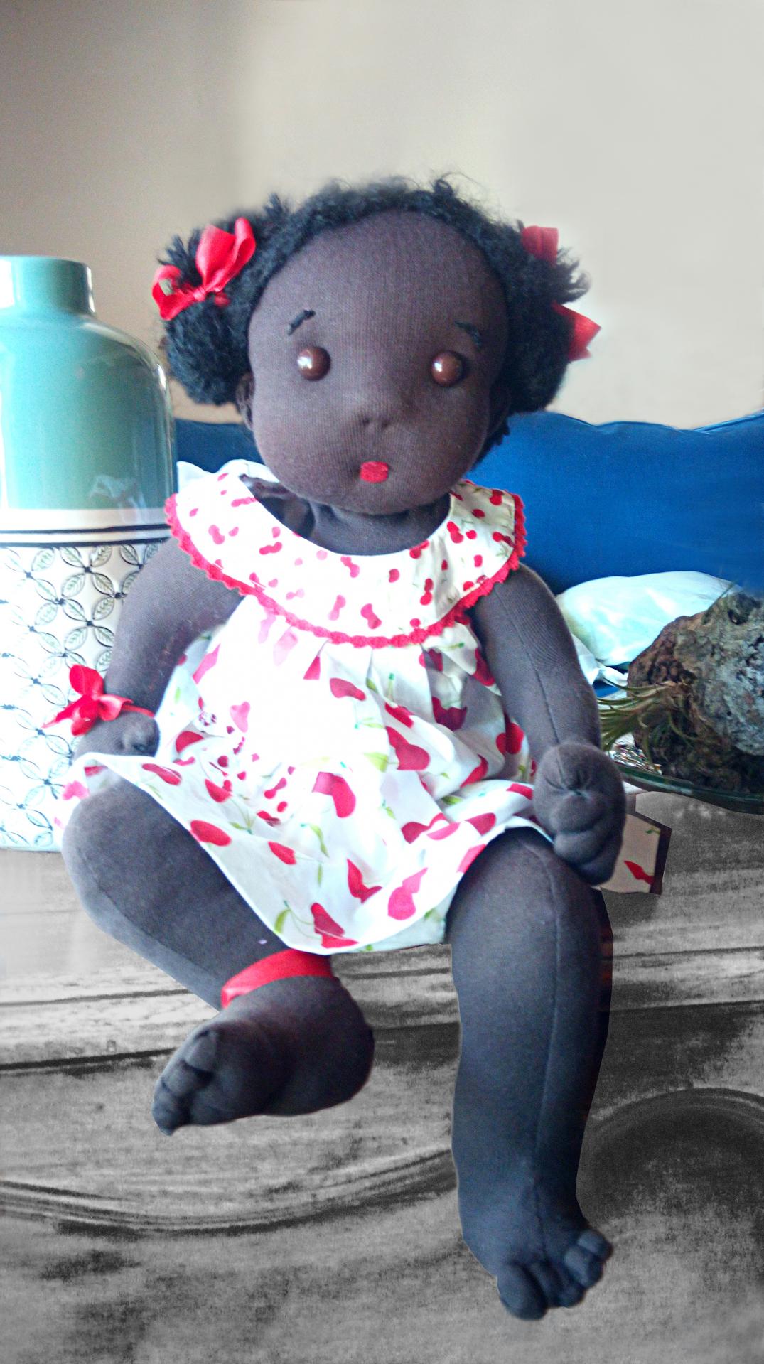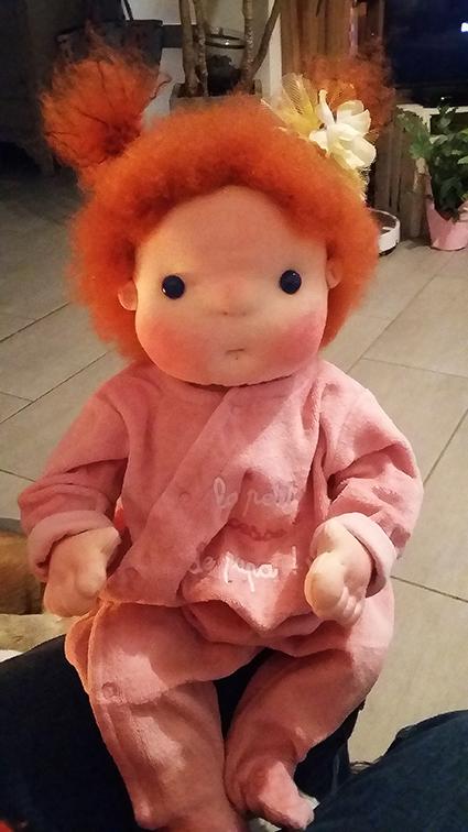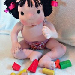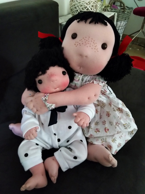 Chaque poupée est unique, livrée habillée et avec une couche lavable que j'ai confectionnée moi-même. Taille : environ 55 centimètres.